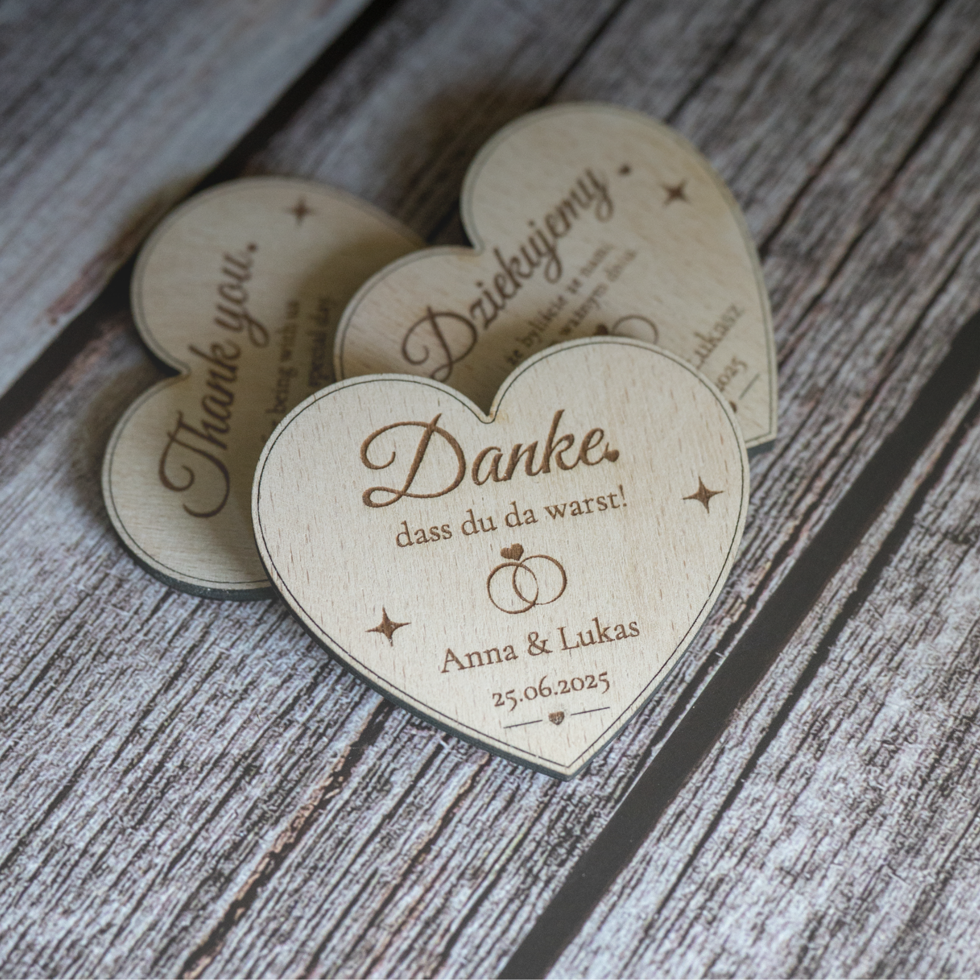 💝 Hochzeitsmagnet aus Holz mit Gravur & Bio-Tee | Personalisiertes Gastgeschenk – Herz, Kreis oder Schmetterling | GraviCraft Handmade