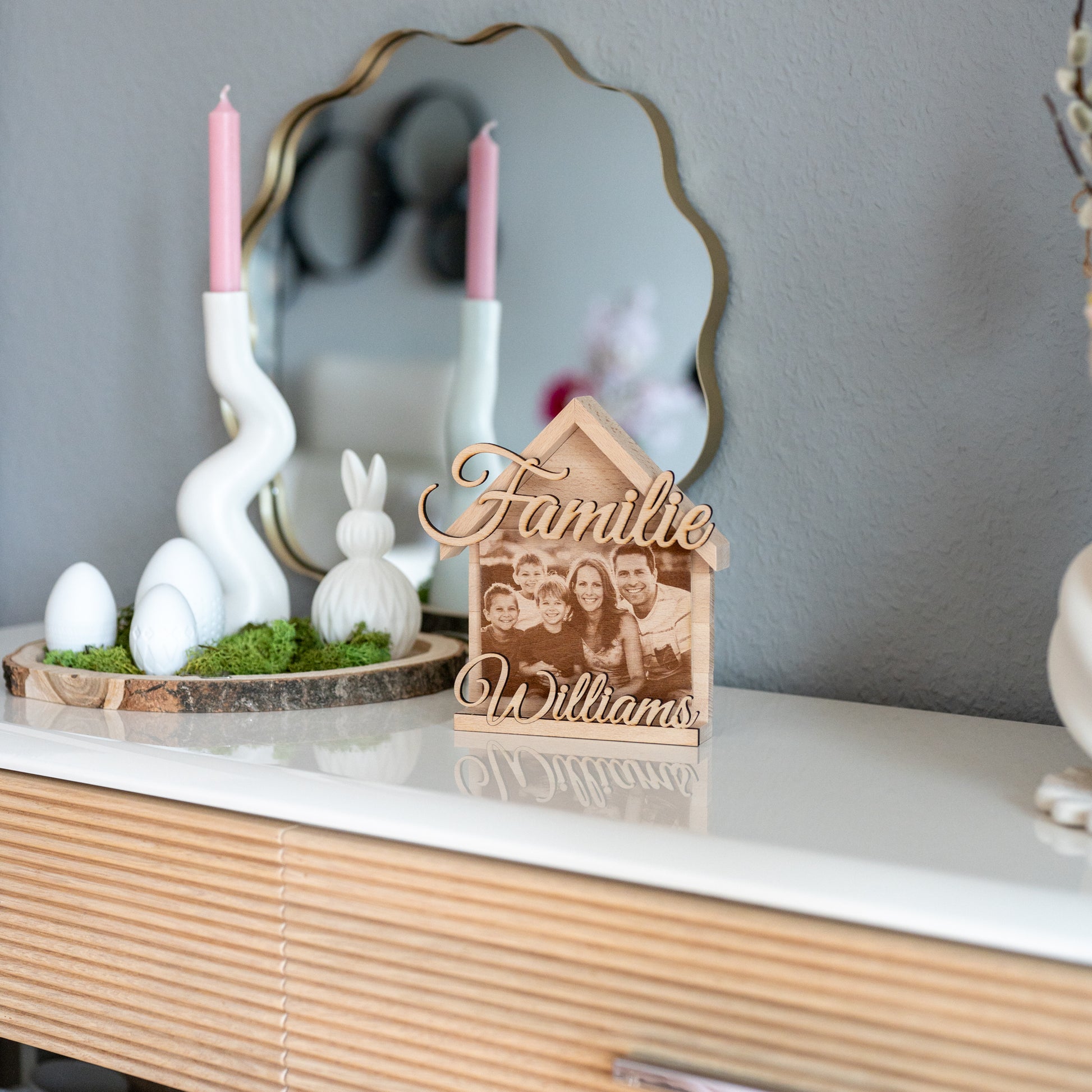 GraviCraft Familienfoto aus Holz – Personalisiertes Geschenk mit Gravur & Namen | Holzbild mit Foto